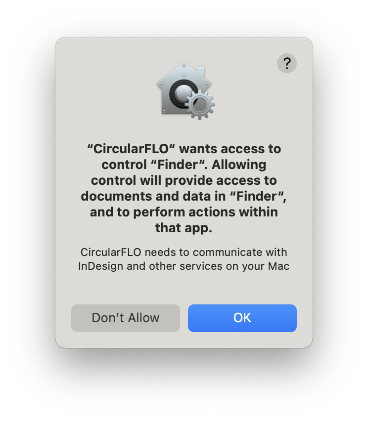 When you first launch your Circular Software application will need to be grant permission to talk to and control other applications by clicking OK to any alerts like this.