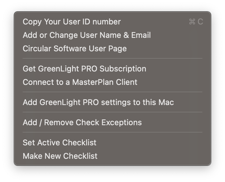 Both GreenLight FREE and PRO users can select which checklist to use when checking a document. GreenLight Custom users switch to the most relevant checklist based on their document naming.