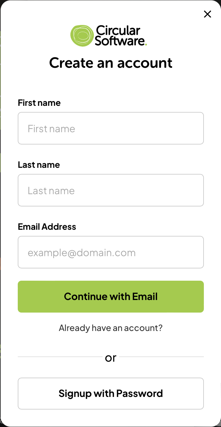 All visitors to the Circular Software site are invited to sign up as Circular Software Members.