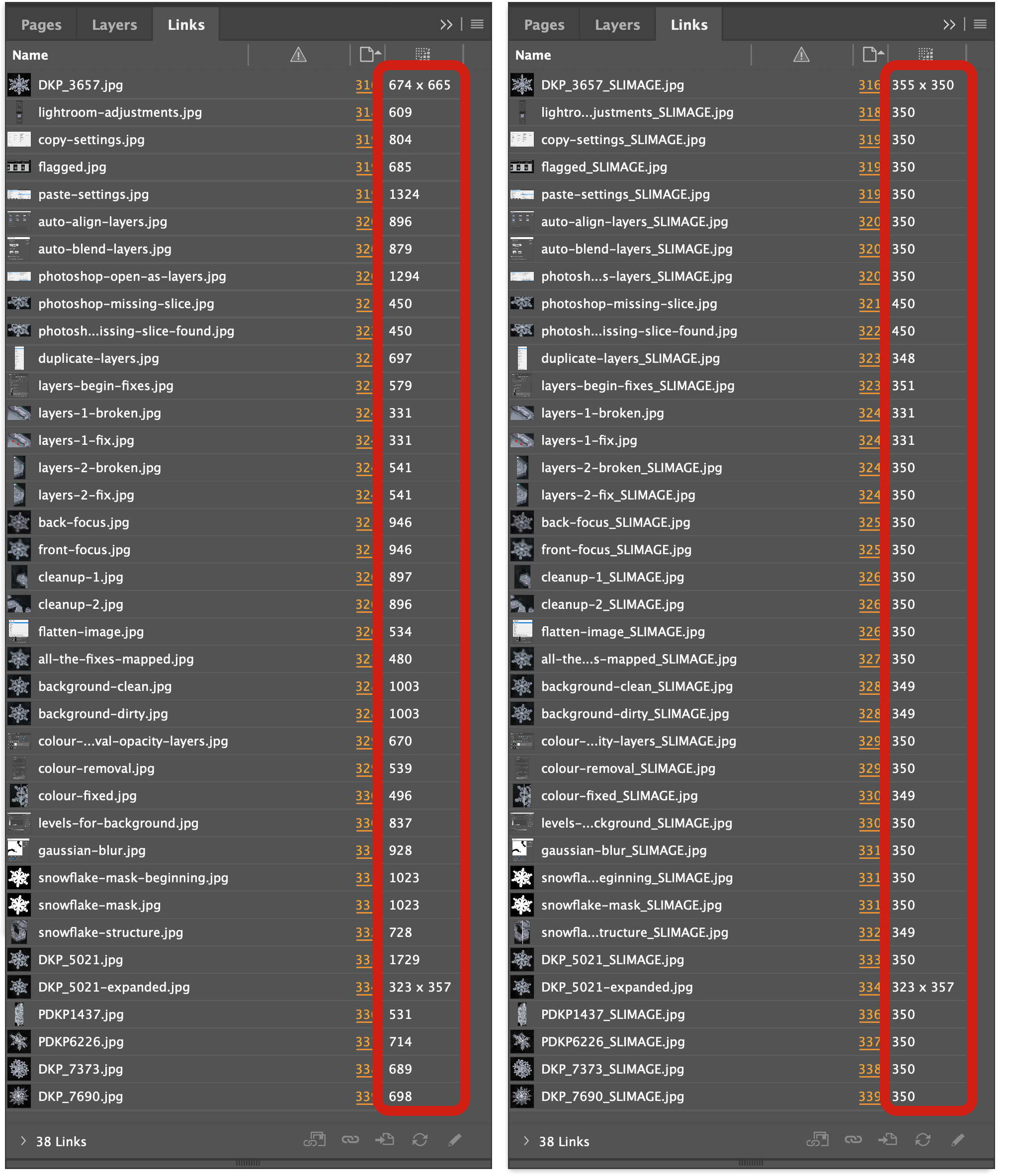 Click Swap all images back to existing slims to replace the originals images in an InDesign document with previously created optimised copies of those images.